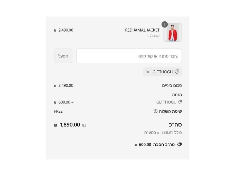 6. עברי לסל הקניות והשלימי את הרכישה. הנקודות שבחרת לממש והטבות אחרות שניתנות למימוש יופיעו בסל הקניות שלך.